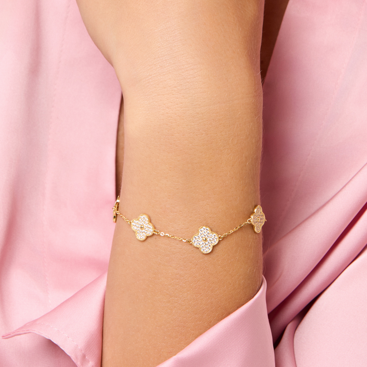 Bransoletka pozłacana ozdobiona koniczyną marokańską i cyrkoniami Calla
