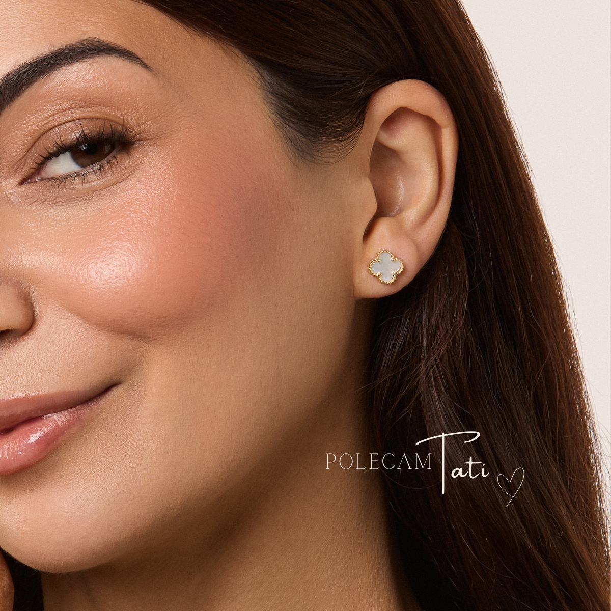 Kolczyki pozłacane na zatyczkę z białą koniczyną marokańską Maroko White
