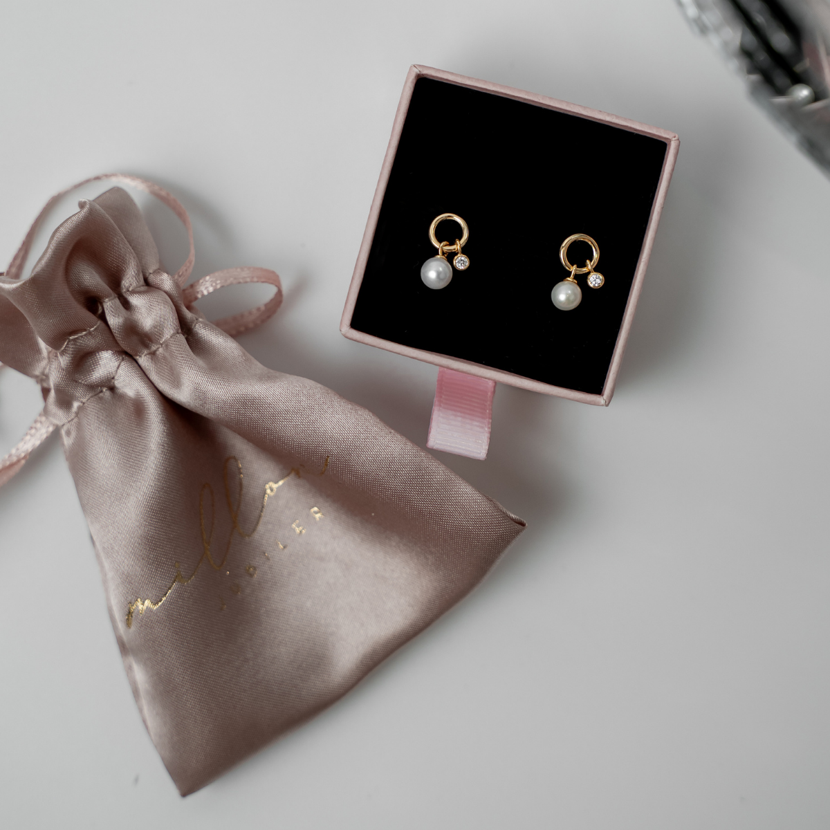 • maleńka cyrkonia osadzona tuż obok perełki, która dodaje kolczykom świetlistego akcentu.