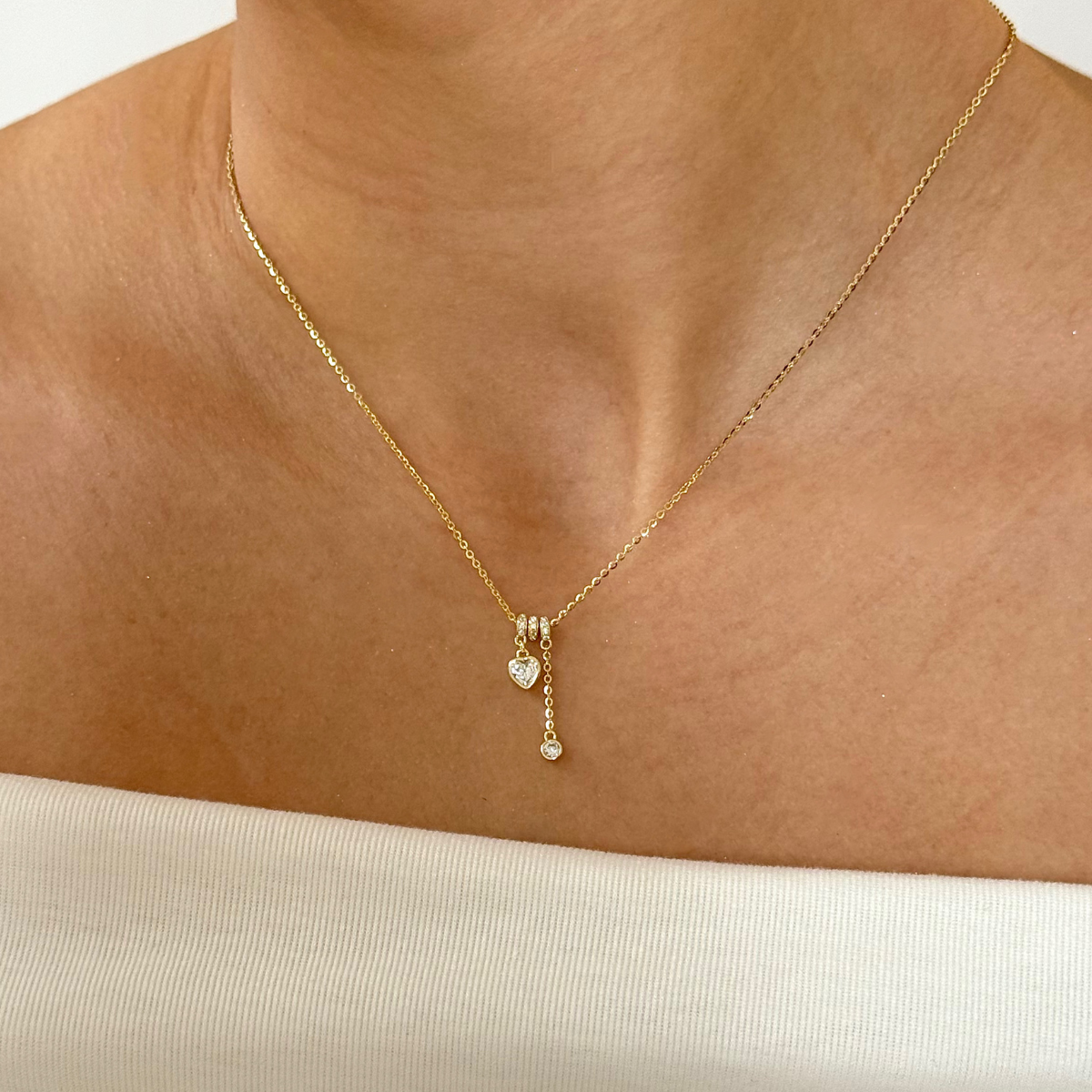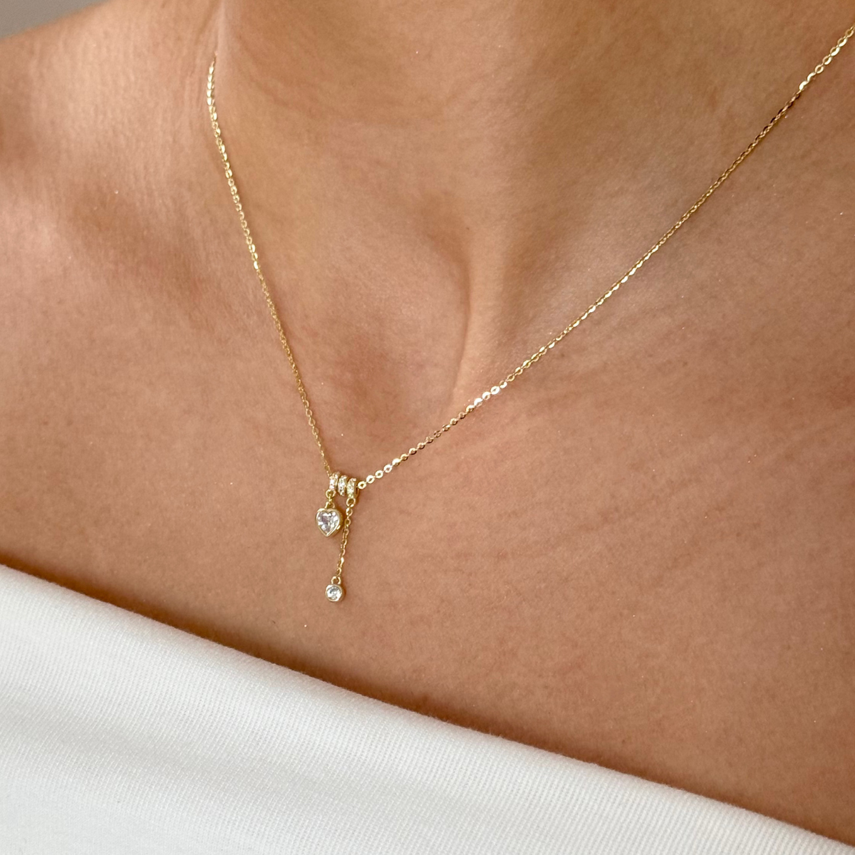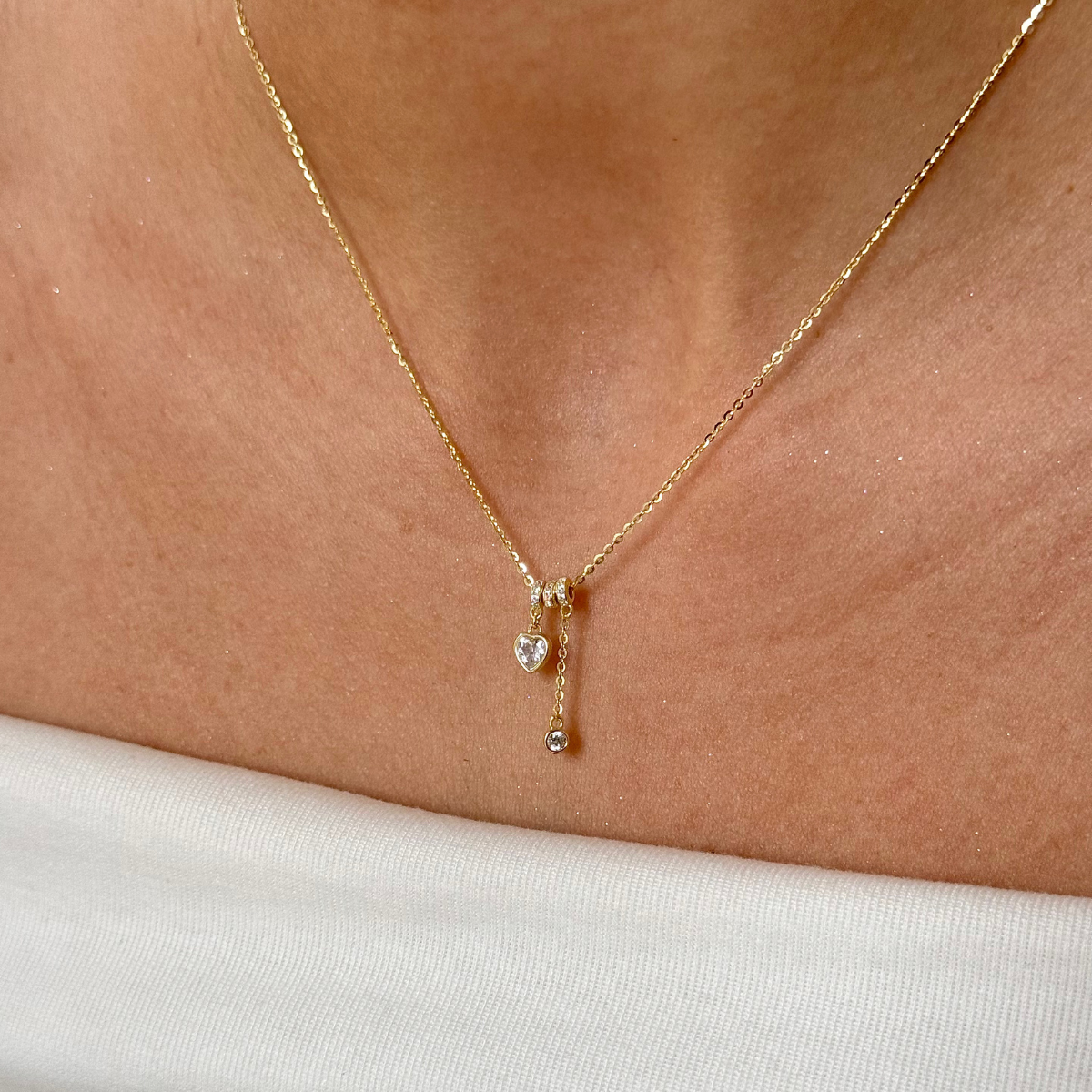 ✨ pierwsza– subtelna obręcz wysadzana drobnymi cyrkoniami, które pięknie odbijają światło, a z niej swobodnie opada zawieszka w kształcie serca – gładka, minimalistyczna, z pojedynczą, lśniącą cyrkonią w centralnym punkcie.