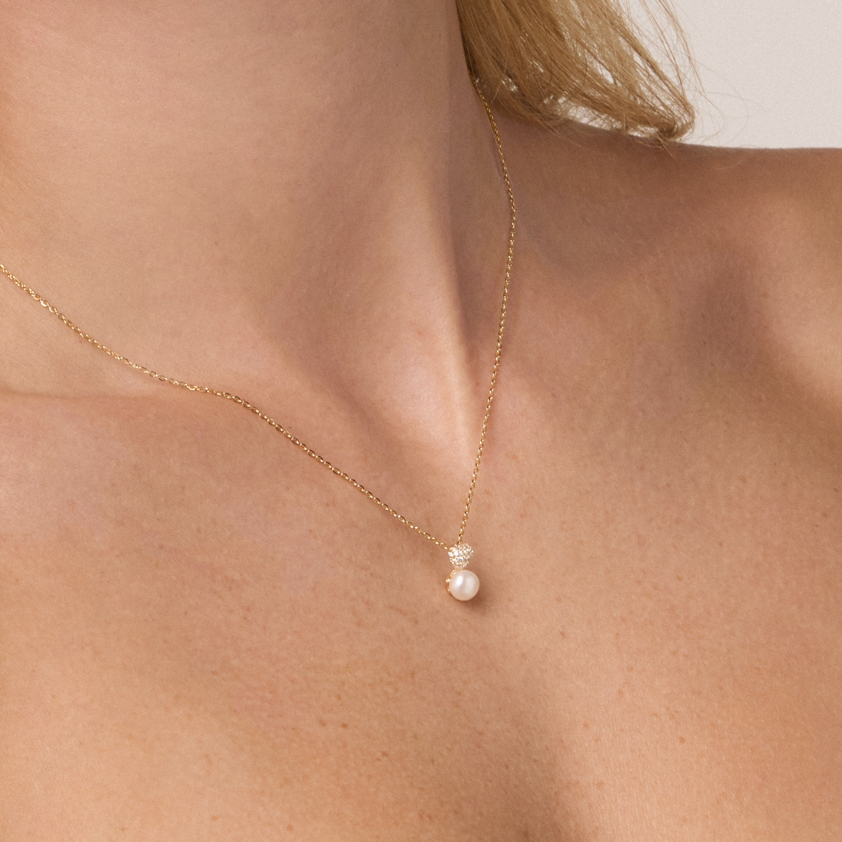 Naszyjnik pozłacany z zawieszką z perłą i cyrkoniami Aurelia