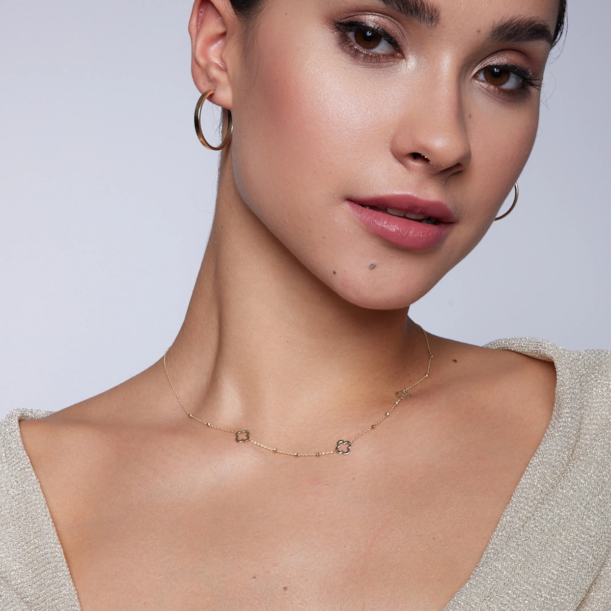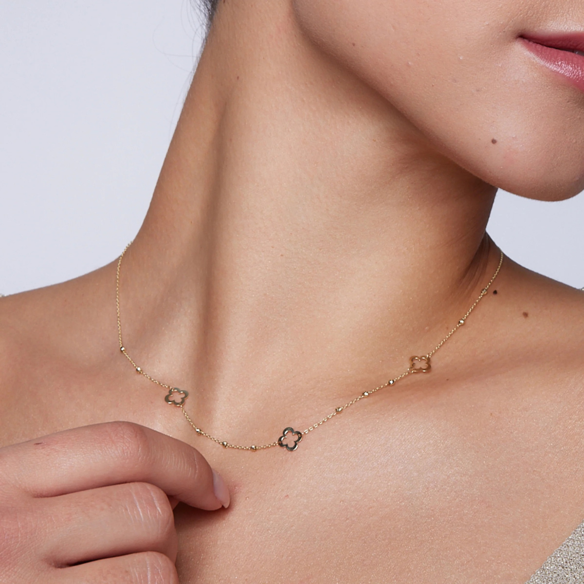Naszyjnik złoty z koniczynami i kulkami Molly