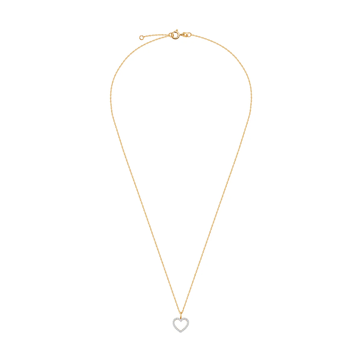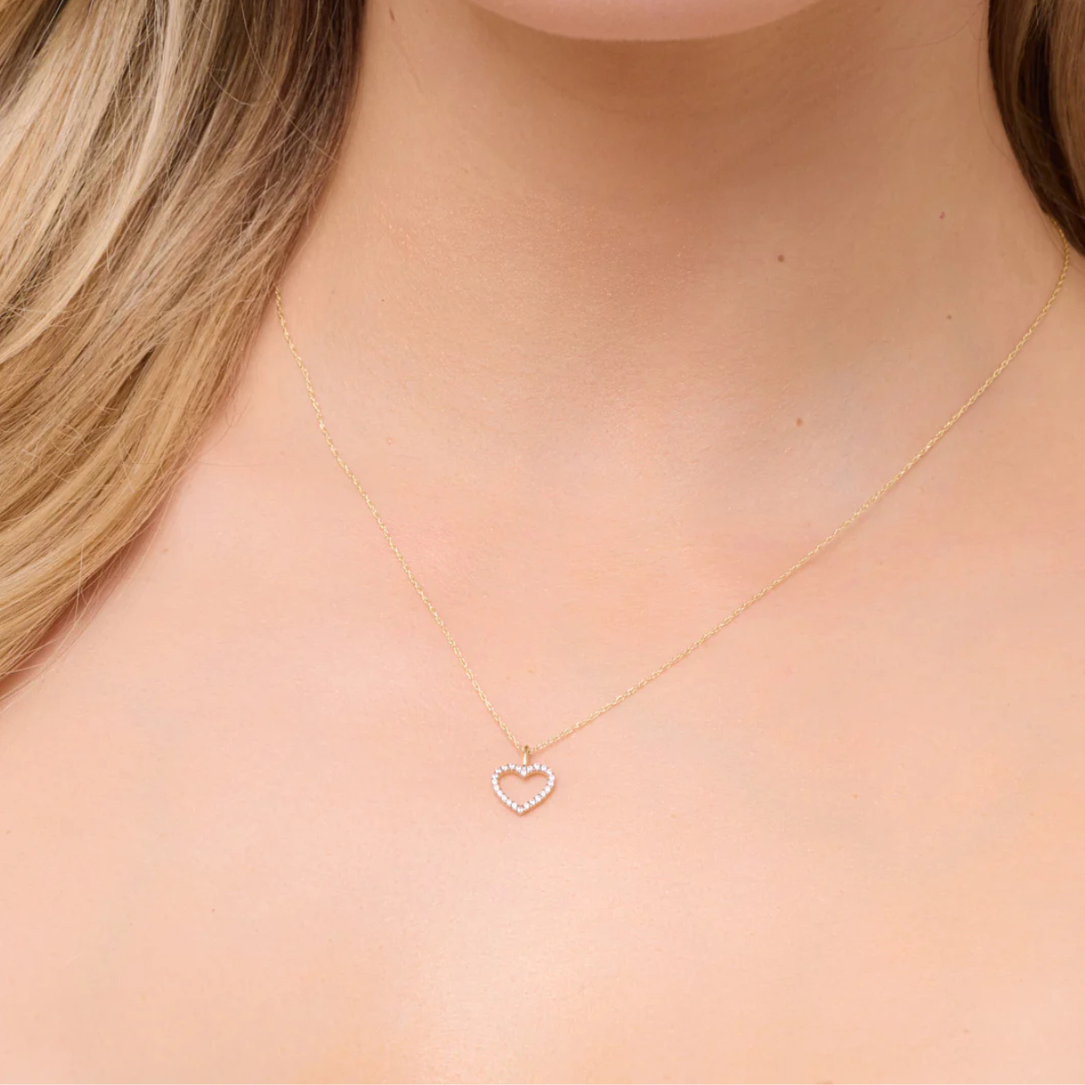 - Łańcuszek o delikatny splocie, ozdobiony zawieszka w kształcie pięknego serca. Serce zdobią cyrkonie o niesamowitym blasku. Naszyjnik złoty Love to nośnik uczuć – idealny na prezent
