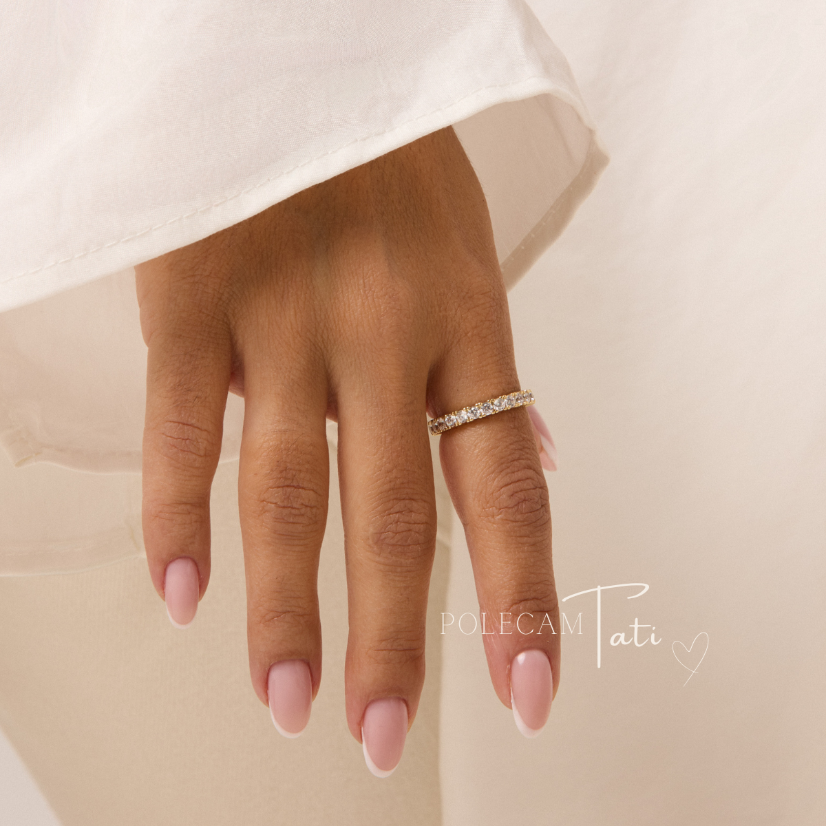 Pierścionek pozłacany z cyrkoniami Mila, to biżuteria nowoczesna i atrakcyjna wizualnie. Obrączkowy typ ozdoby daje sporą swobodę w zabawie dodatkami, umożliwiając łączenie pierścionka z innymi elementami twojej kolekcji. Model świetnie prezentuje się również solo – jego znakiem rozpoznawczym jest obecność białych cyrkonii na całym obwodzie. Pozłacany pierścionek Mila to propozycja dla kobiet o wyrazistym usposobieniu, które lubią wyróżniającą się biżuterię.