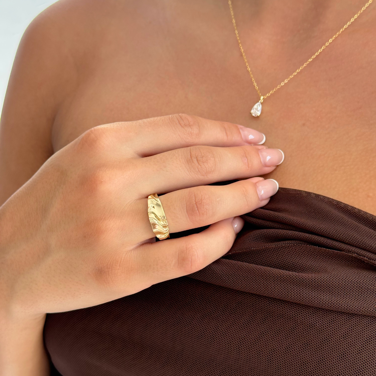 Dust to pierścionek, który jak złoty pył osiada na palcu – lekki, nienachalny, ale nie do przeoczenia.