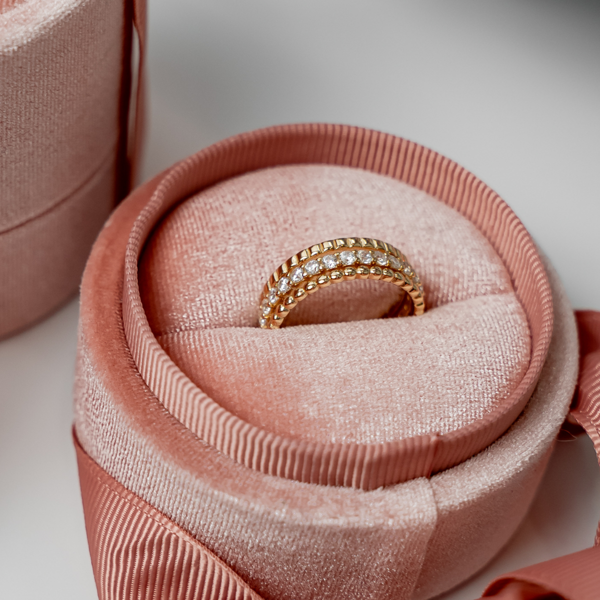 Połączenie tych trzech obrączek sprawia, że Solenne wygląda efektownie, wielowymiarowo i niezwykle elegancko — a jednocześnie jest jednym, poręcznym i stabilnym pierścionkiem.
