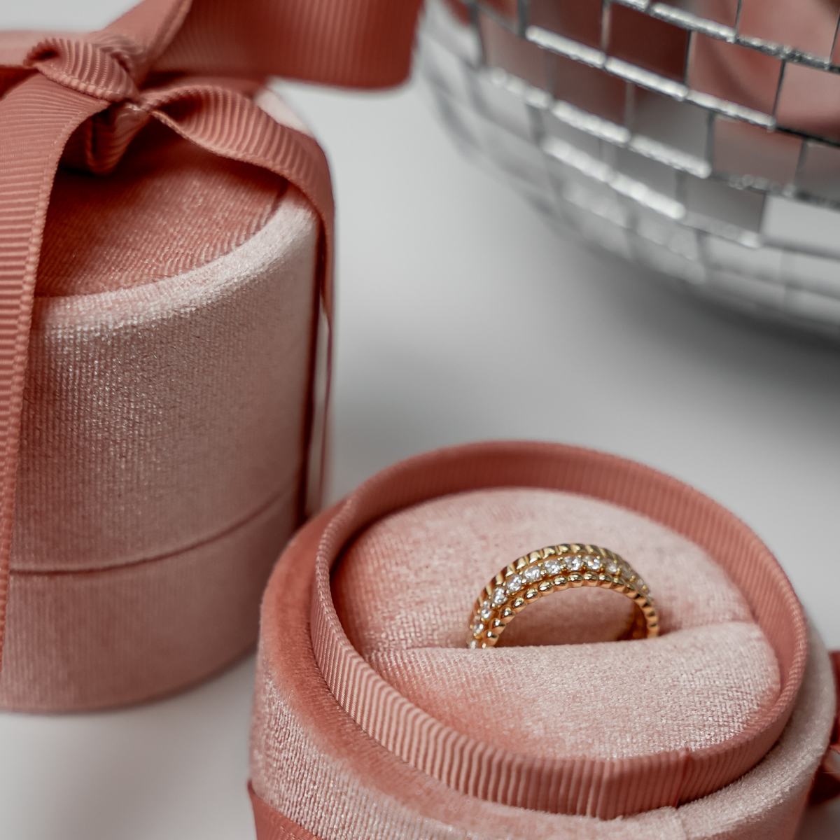 Kamienie zostały osadzone tak, by tworzyć ciągły, harmonijny pas blasku, który wygląda jak prawdziwa droga mleczna na Twoim palcu. Każda cyrkonia jest idealnie równa, co nadaje pierścionkowi spektakularnej świetlistości.