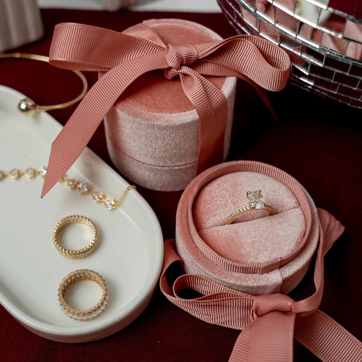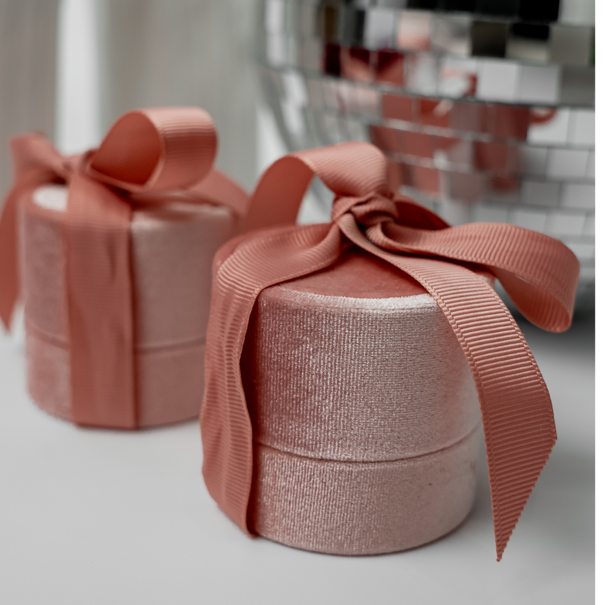Welurowe opakowanie jubilerskie w kultowym kolorze pudrowego różu będzie zarówno pięknym opakowaniem na prezent jak i ozdobą w toaletce.